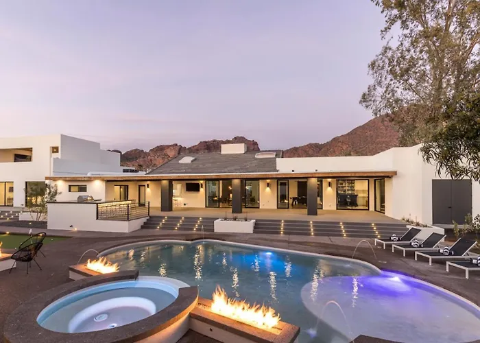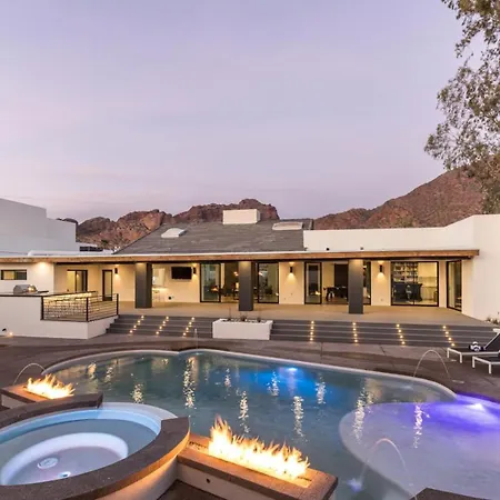 La villa Luxury Micro-Resort, Theater, Sauna, Heated Pool comprend une cuisine équipée, ainsi qu'un coin repas pour préparer vos repas. Il y a aussi un réfrigérateur, un four et de la vaisselle disponibles dans la cuisine. L'aéroport international Sky Harbor de Phoenix est situé à 5 km de villa. Vous pourrez vous détendre au bord d'une piscine privée et profiter d'un jacuzzi et d'un sauna.